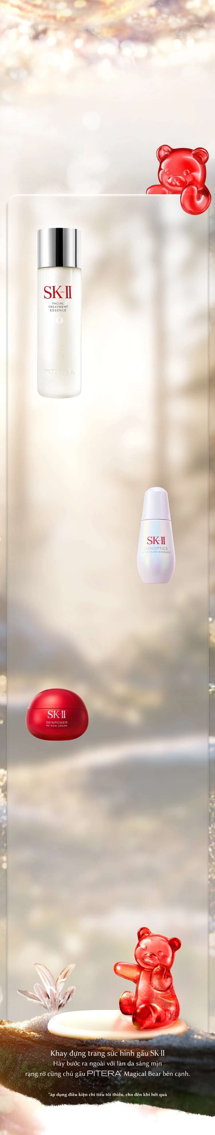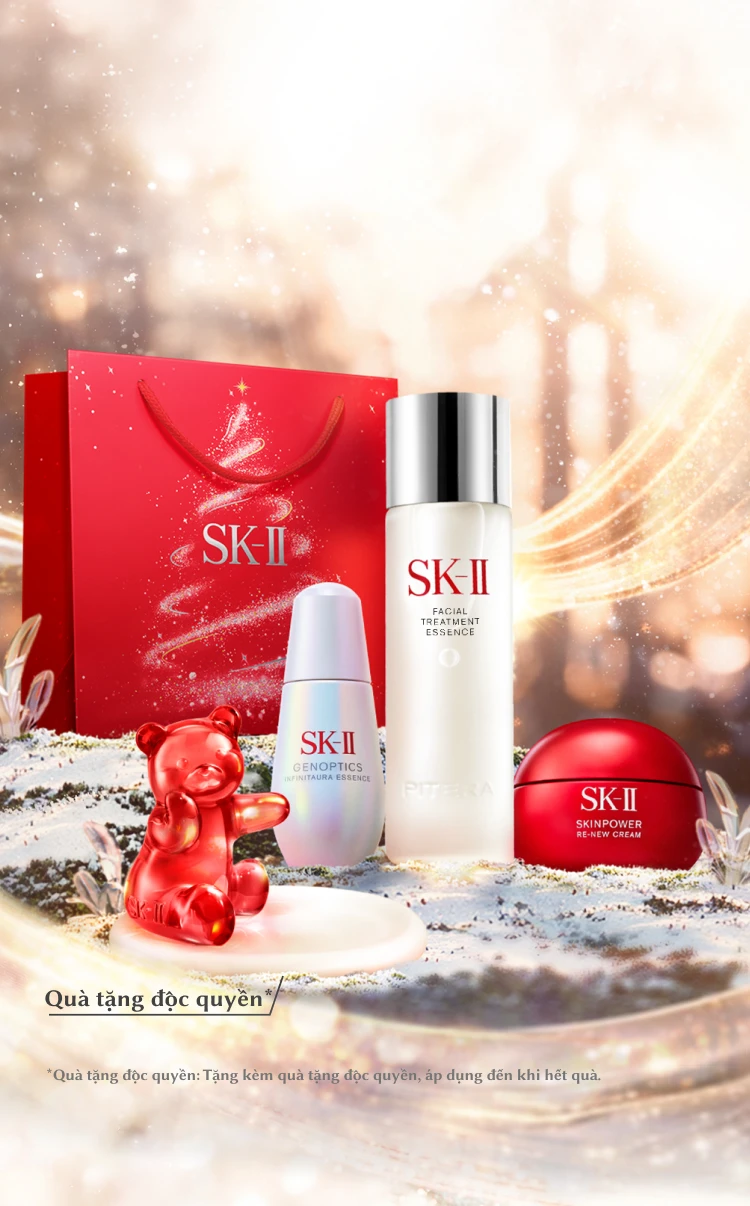 - Gồm Nước dưỡng ẩm Facial Treatment Essence, Tinh chất GenOptics Infinitaura Essence và Kem Dưỡng Skinpower Re-new